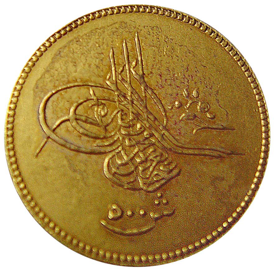 عملة ذهبية 500 فئة ش ضرب 8 في مصر 1277 هـ
