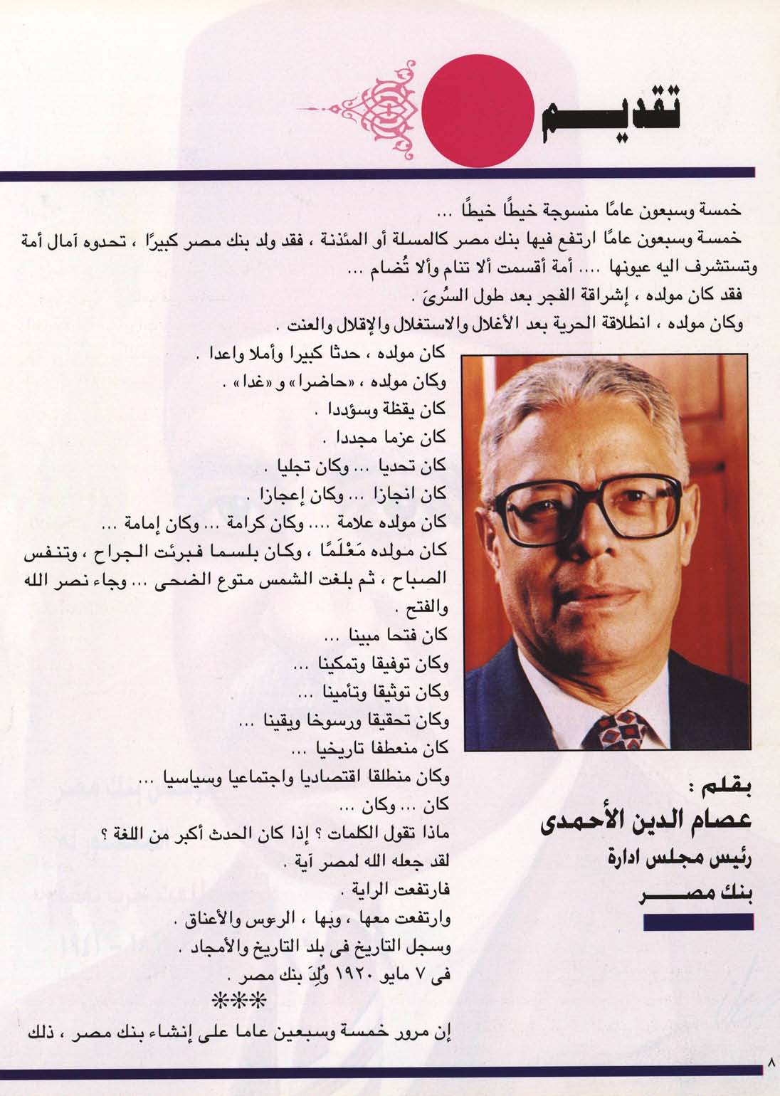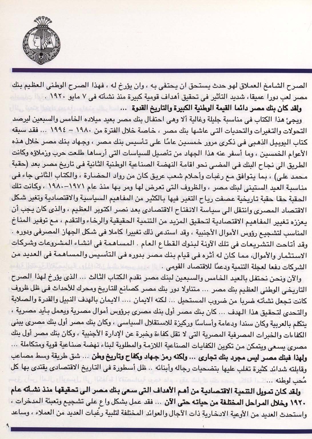 المجلد يتناول احتفال بنك مصر بالعيد الماسي 1920- 1995