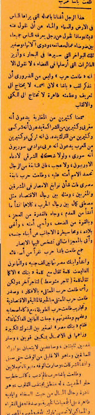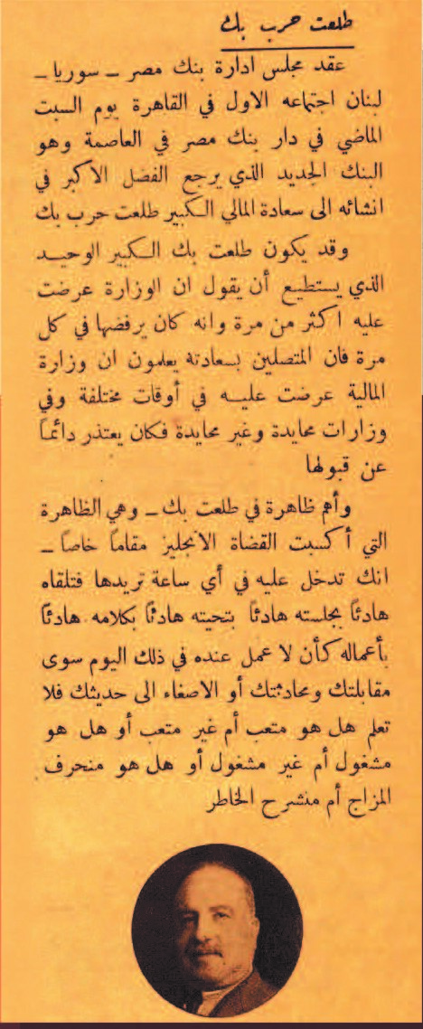 صدر عام 2011، ويتناول الكتاب بعض ما تم ذكره عن طلعت حرب باشا في الصحافة المصرية والعالمية
