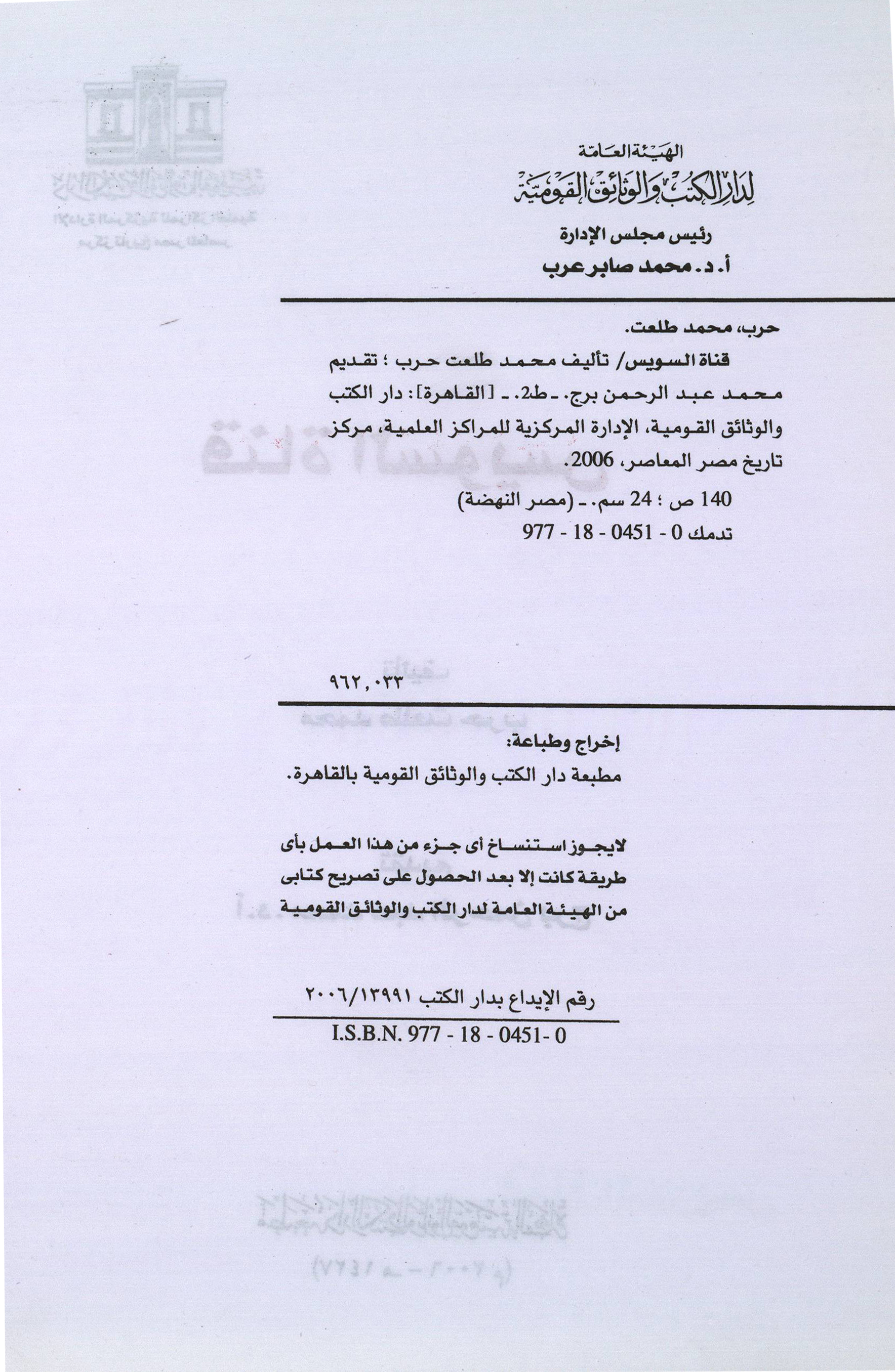 يستعرض طلعت حرب نشأة فكرة قناة السويس، ويُبيّن أنها فكرة مصرية صميمة منذ أيام الفراعنة. حيث قام سنوسرت الثالث بتوصيل نهر النيل بخليج السويس، ثم قام عمرو بن العاص بإعادة حفر نفس القناة، التي سُميت "خليج أمير المؤمنين". واستمرت القناة في أداء دورها حتى ردمها أبو جعفر المنصور بعد 134 سنة بسبب الاضطرابات السياسية.