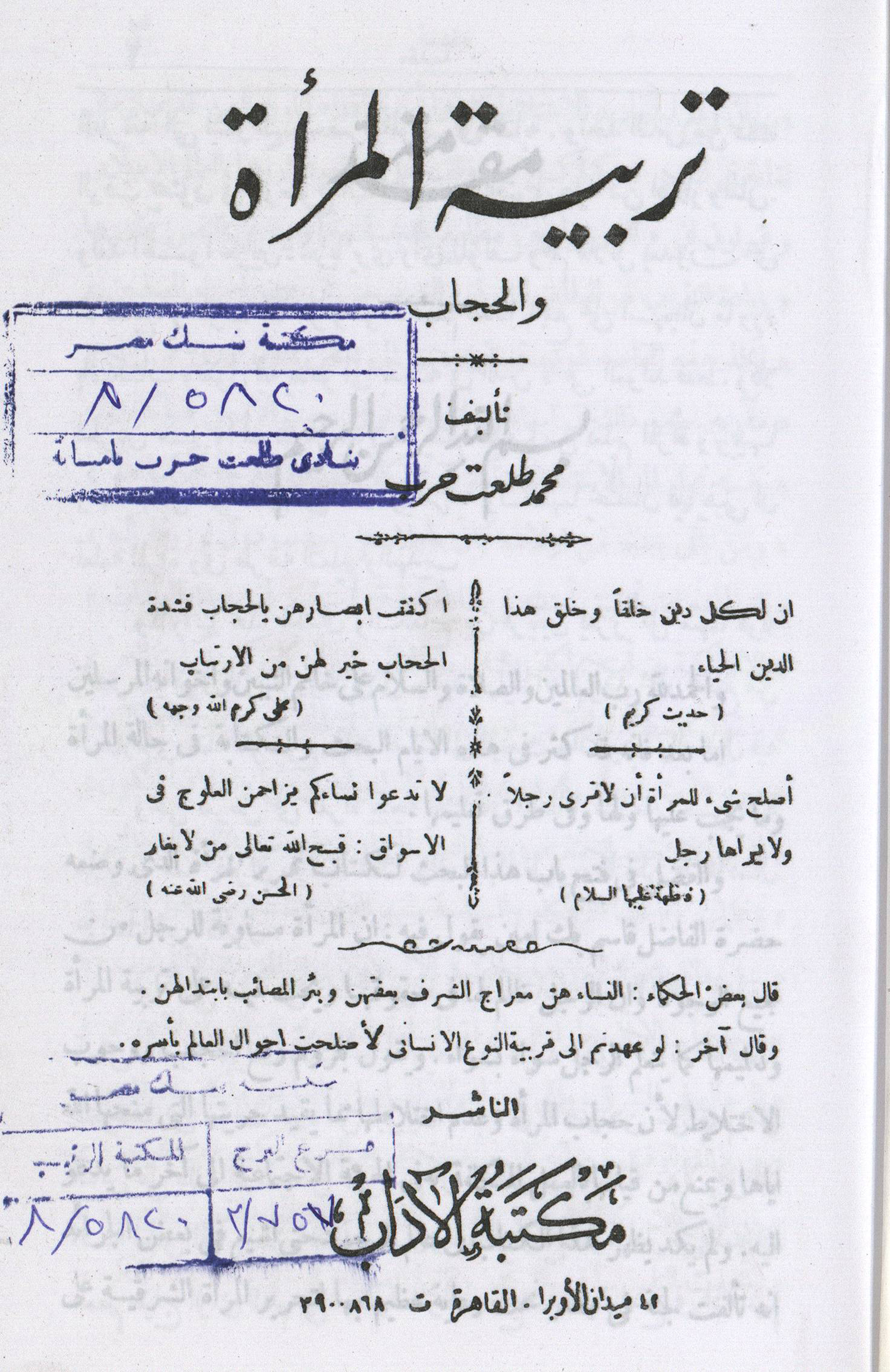من تأليف محمد طلعت حرب باشا عام 1899 – طُبع بمكتبة الآداب بالقاهرة – يحتوي الكتاب على 140 صفحة.